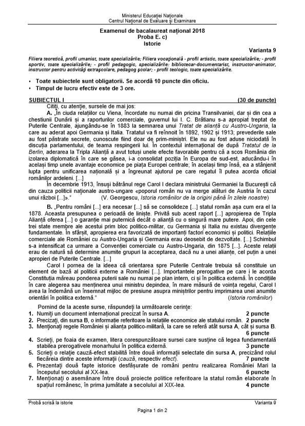 Subiecte bac 2018 istorie la subiectul i candidaţii au primit un text despre constituirea româniei mari în baza căruia au trebuit să rezolve mai multe cerinţe.